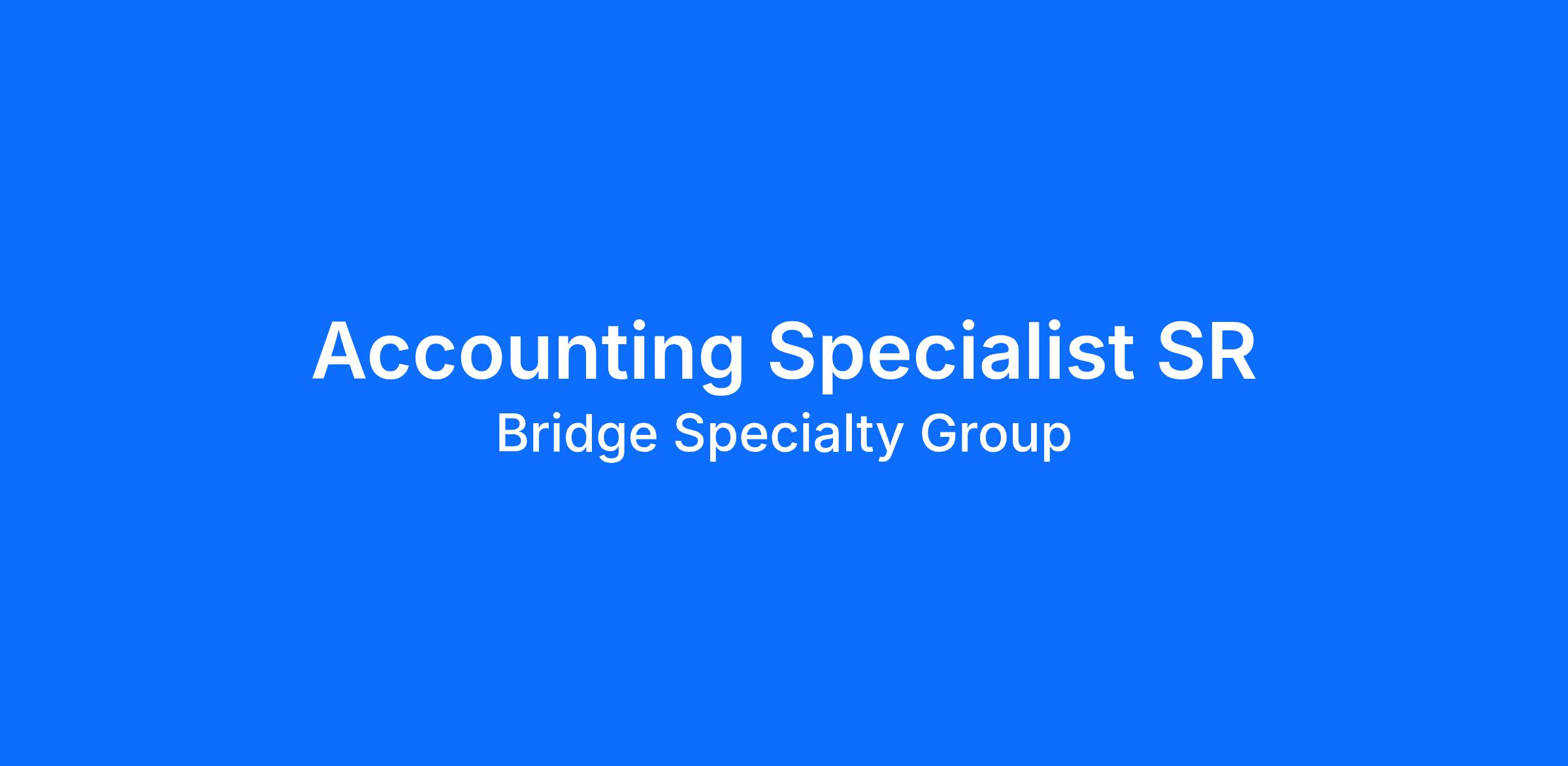 Bridge Specialty Group is seeking an Accounting Specialist SR to join our growing team!