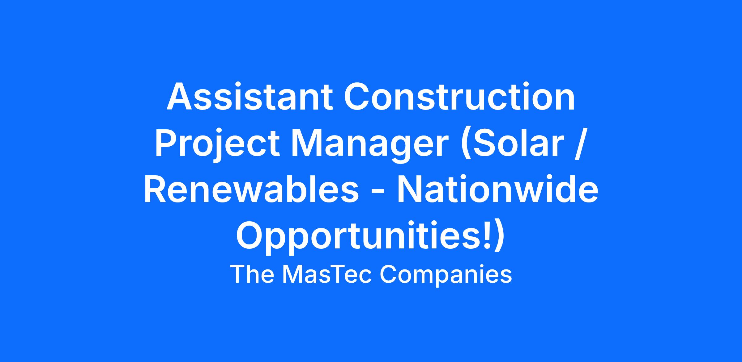 Are you ready to take the next step in your construction career and help shape the future of clean energy? We’re looking for a self-driven, resourceful, and disciplined Assistant Project Manager to support the successful delivery of utility-scale solar projects across the U.S. This is a high-impact, growth-oriented role designed to develop future project leaders. You’ll be part of a team that partners with top energy clients nationwide to build a more sustainable future—one solar project at a time.