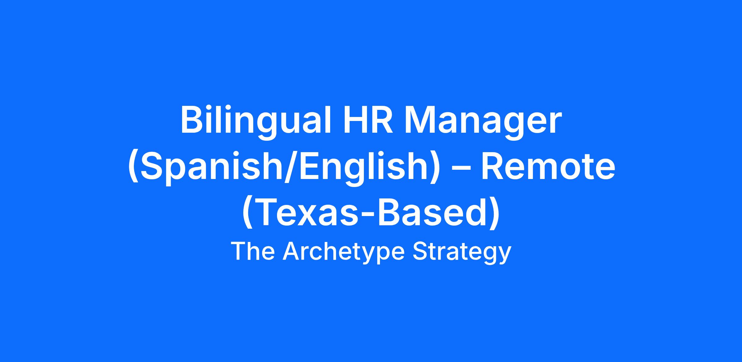 Job Title: Bilingual HR Manager (Spanish/English) – Remote (Texas-Based)