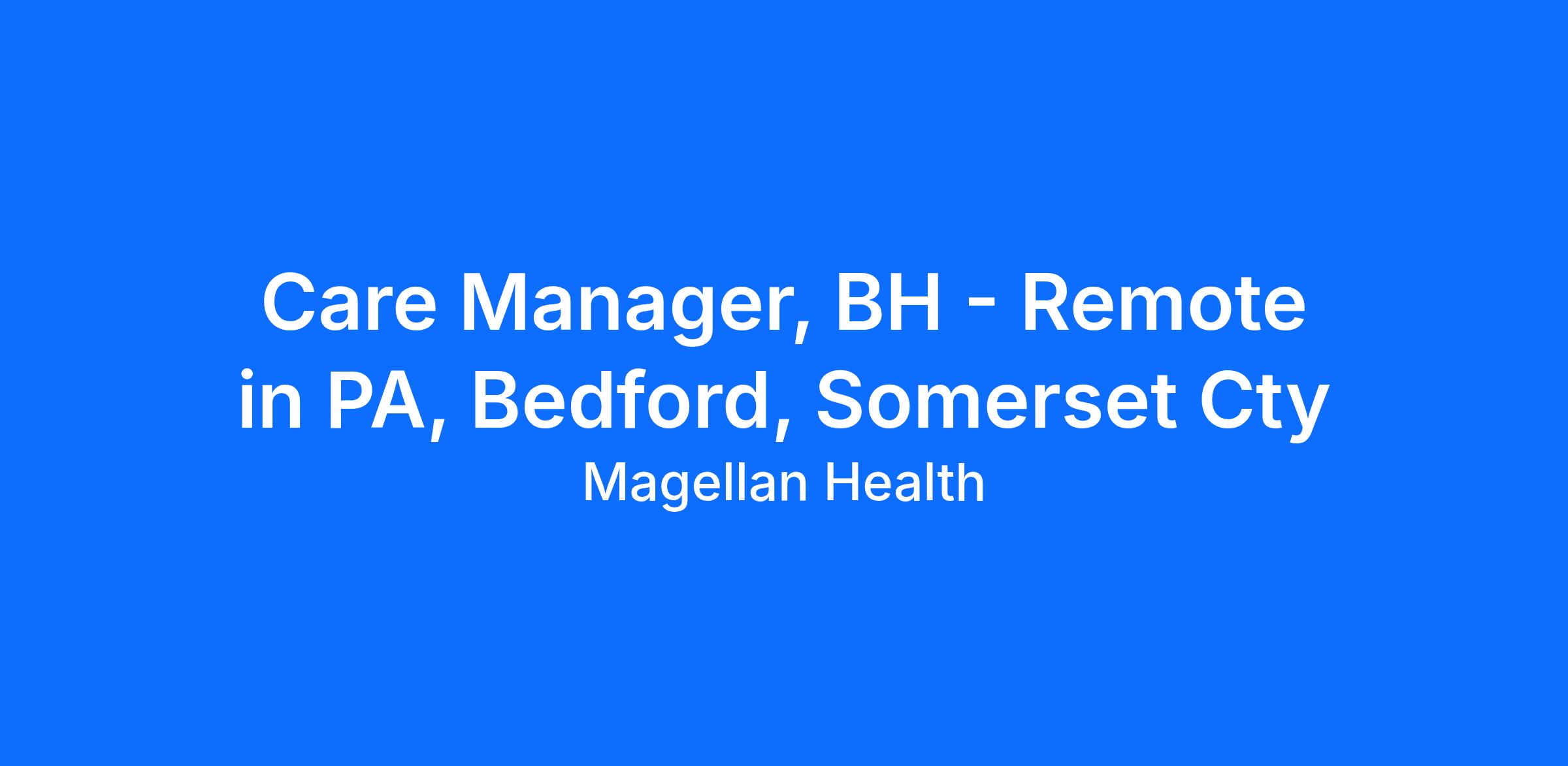 Care Manager, BH - Remote in PA, Bedford, Somerset CtyGrade