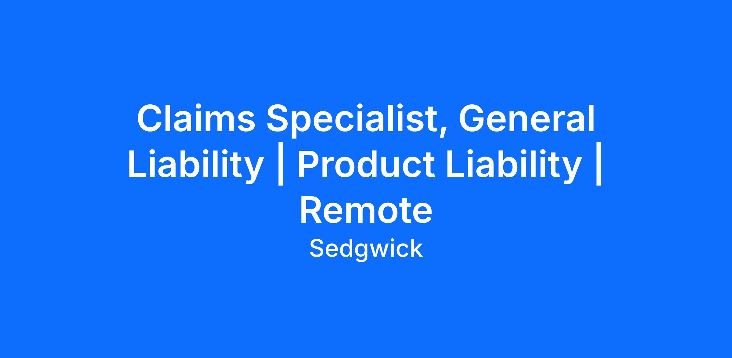 Claims Specialist, General Liability | Product Liability | RemoteAre you looking for an impactful job where you can apply your knowledge and experience in the context of an energetic culture?