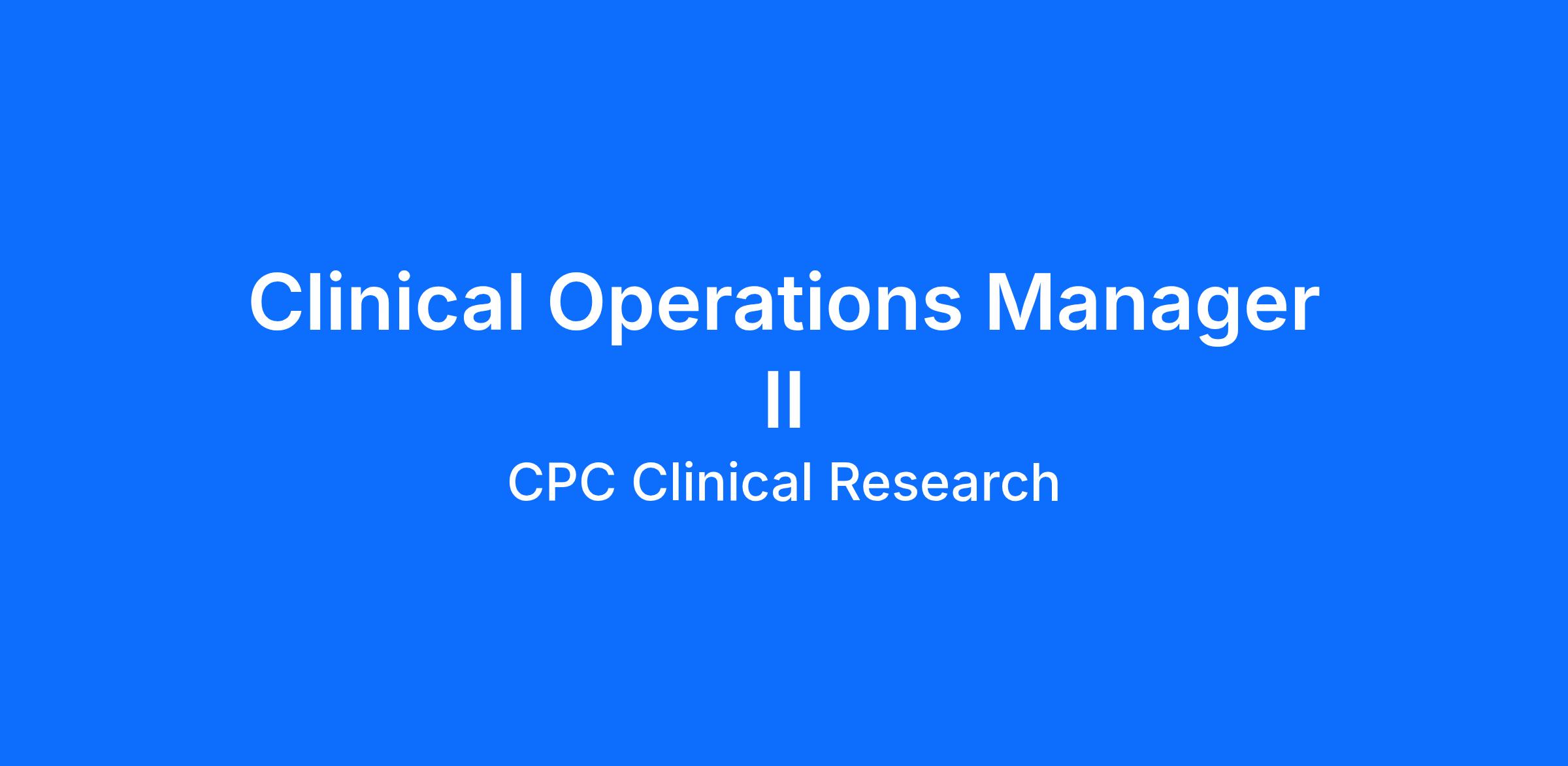 We are looking for an experienced Clinical Operations Manager II to join our team!