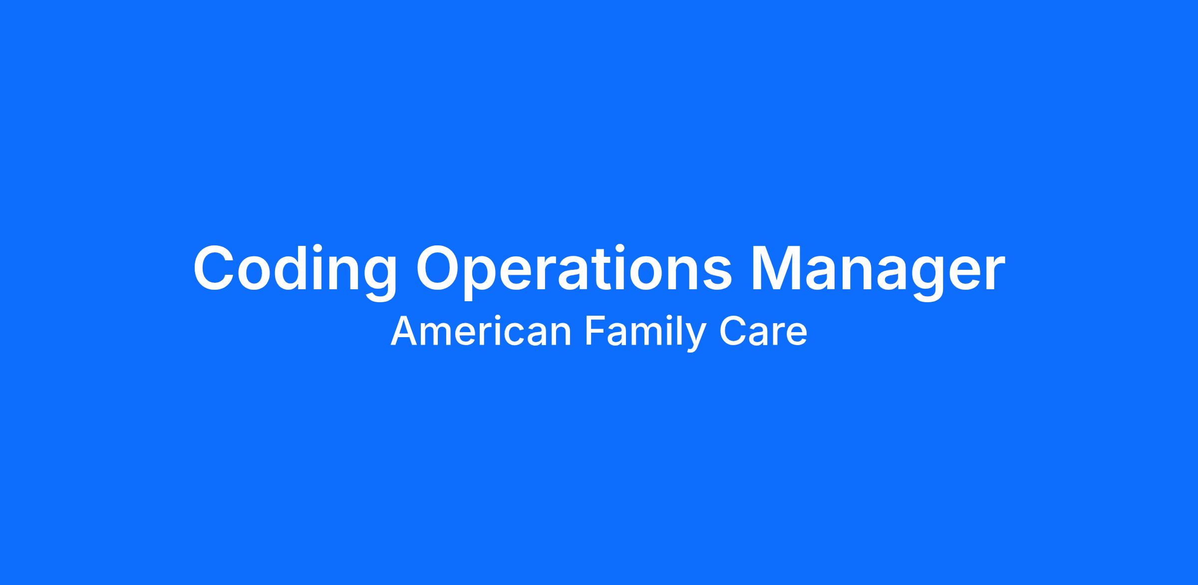 The Coding Operations Manager provides oversight of end-to-end coding workflows across American Family Care’s high-volume urgent care network.