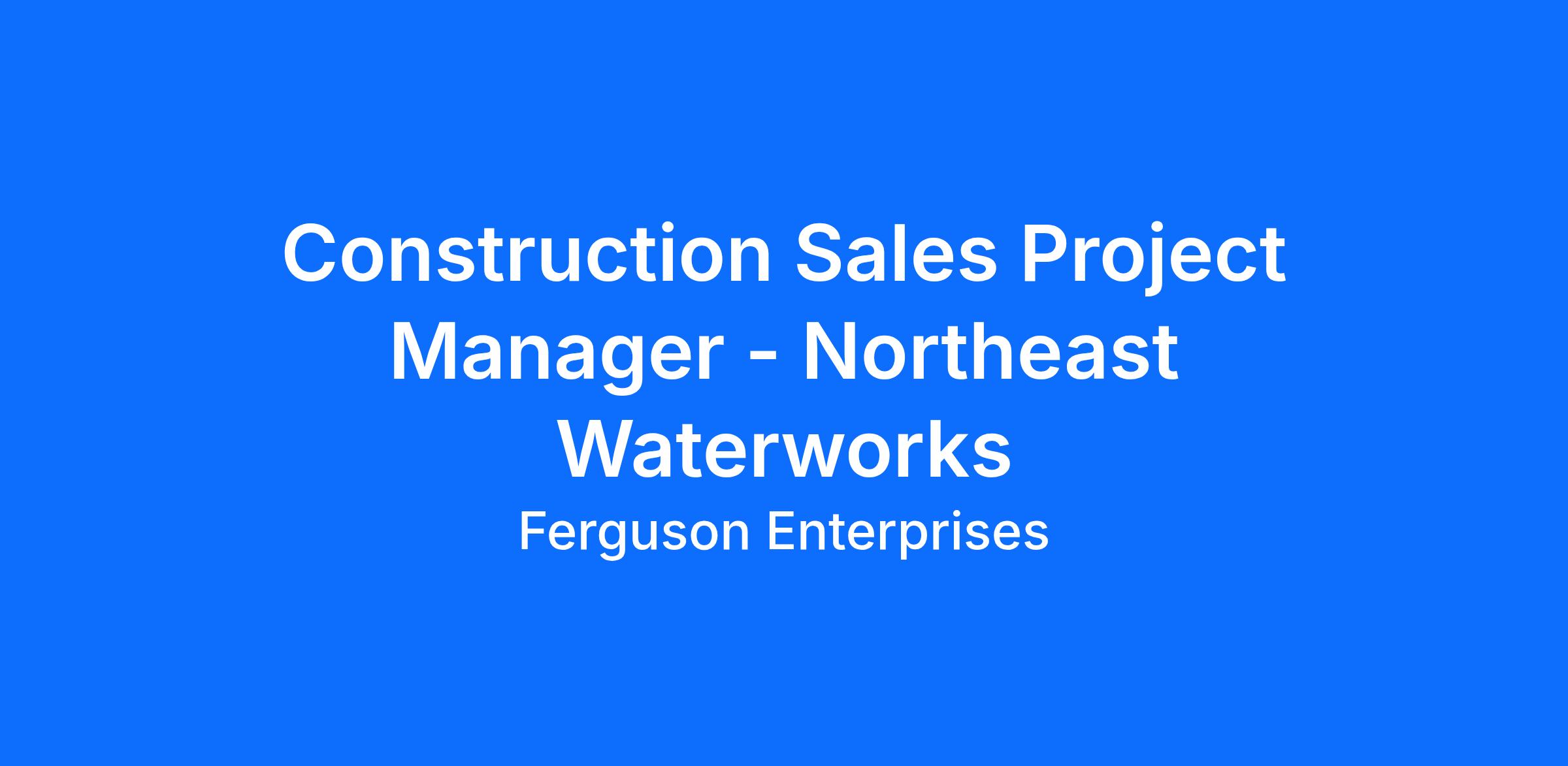 Construction Sales Project Manager - Northeast Waterworks