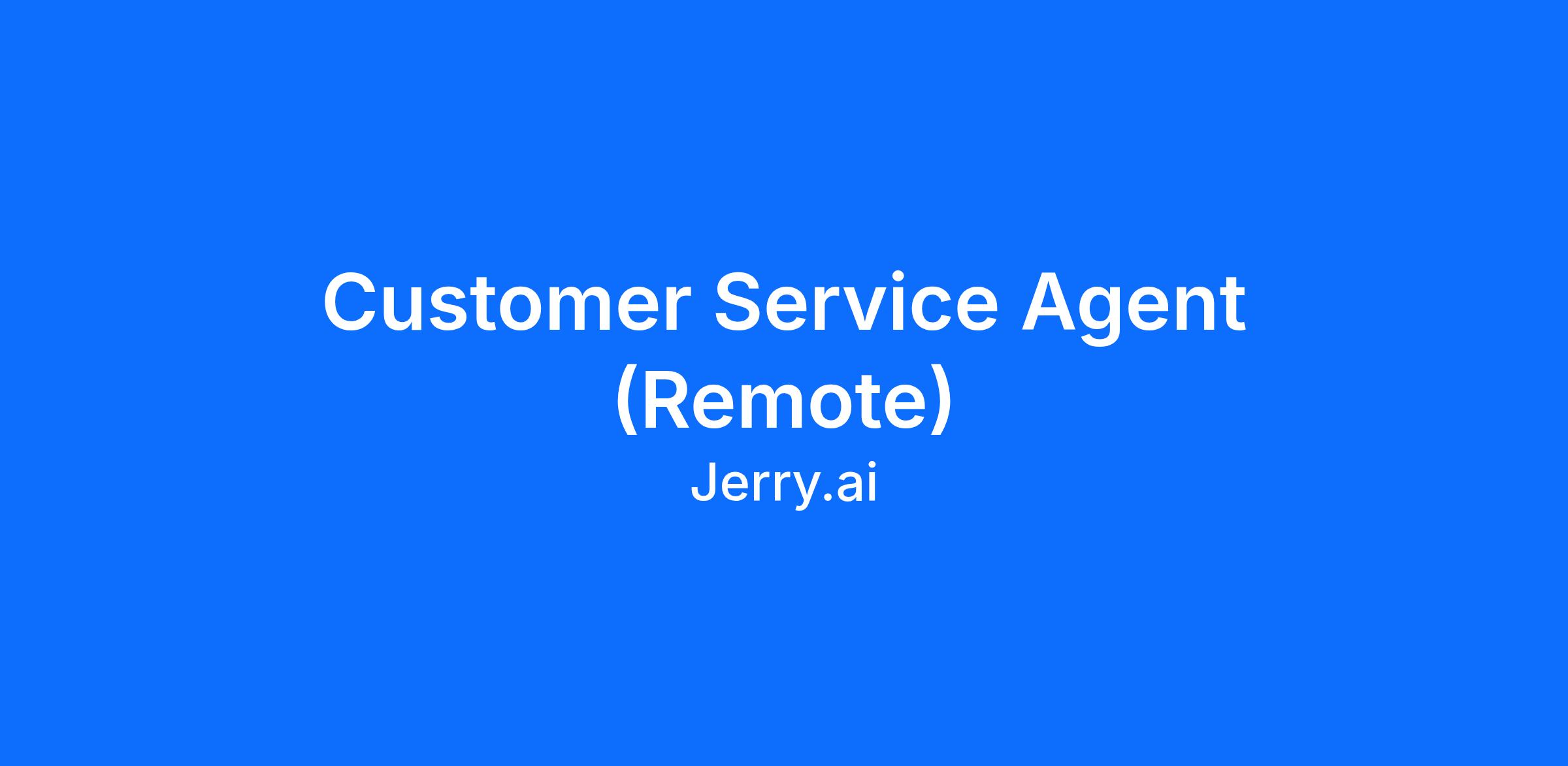 We are looking for a Customer Service Agent to join our growing team! In this role, you will be responsible for helping our existing customers make changes to their current insurance policies from one of Jerry's 55+ insurance carrier partners. From processing service changes to answering questions regarding policy details, you will support our customers with enthusiasm and care. If you are looking for an opportunity to make a measurable difference in the lives of millions, we'd love to hear from you!
