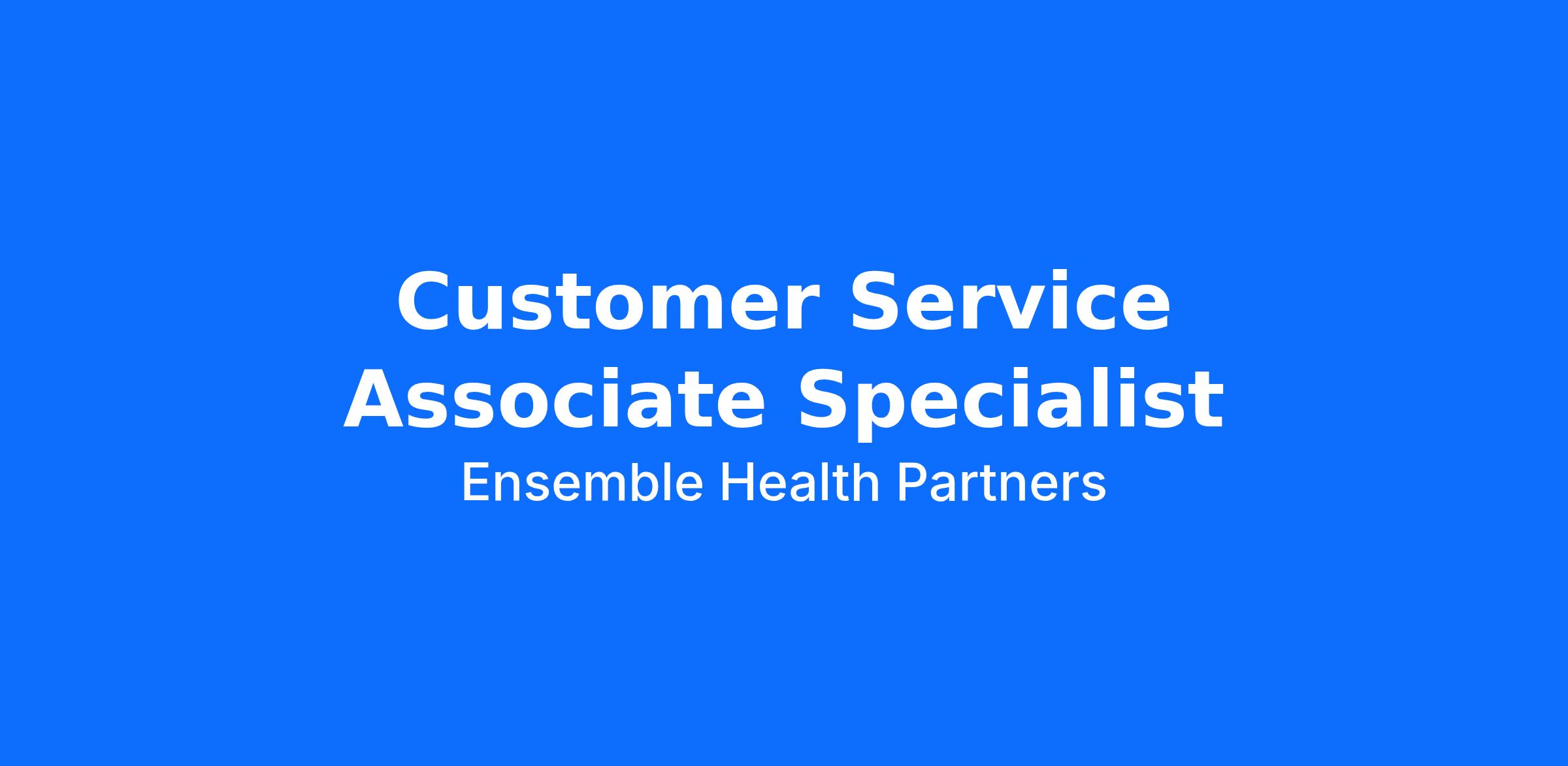 The Customer Service Associate Specialist performs all customer service and collection activities across the Revenue Cycle. Job duties include, but are not limited to: