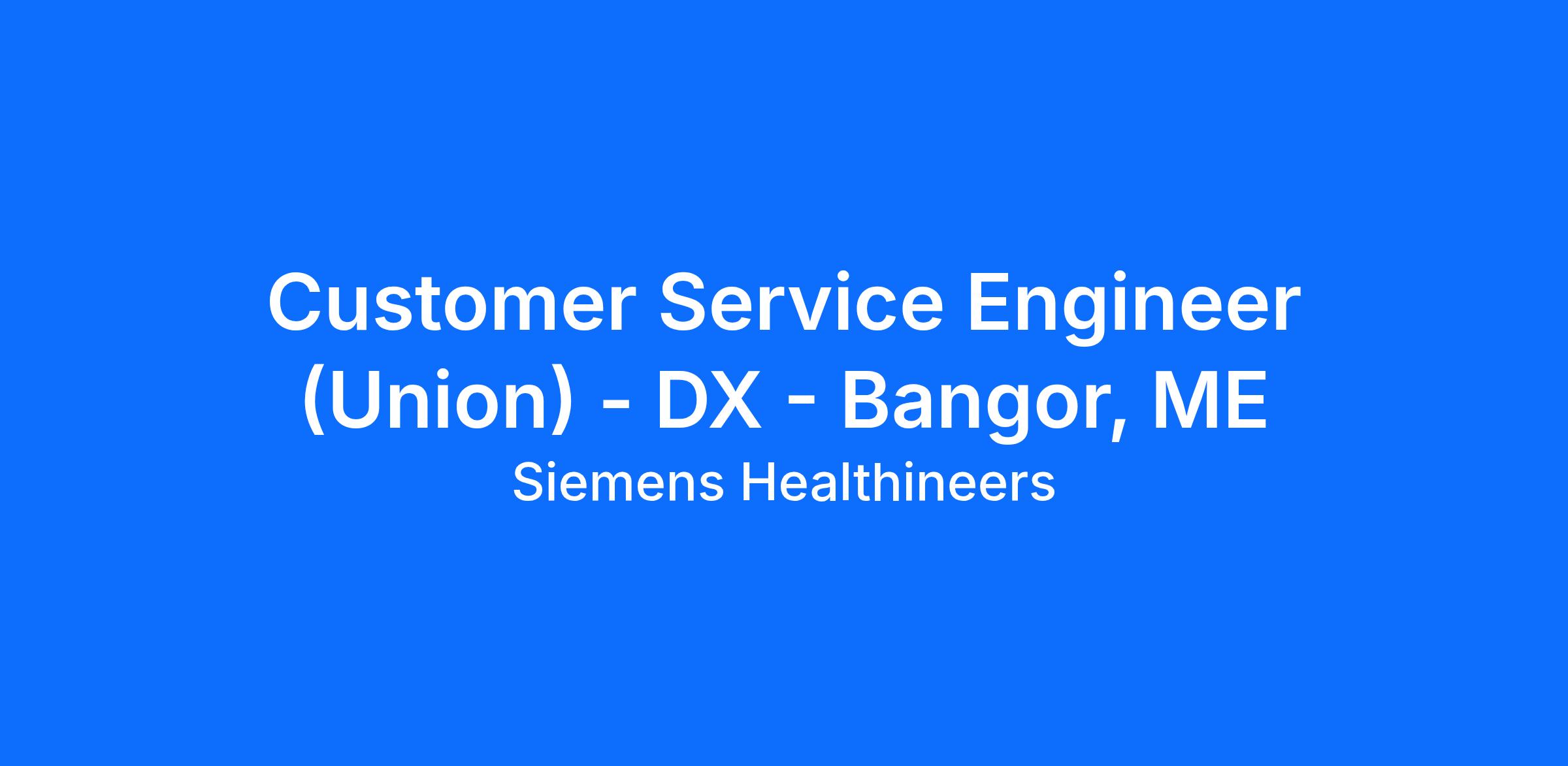 You will be servicing Diagnostic Equipment in the Bangor, ME area. Customer Service Engineer Level based on prior experience.
