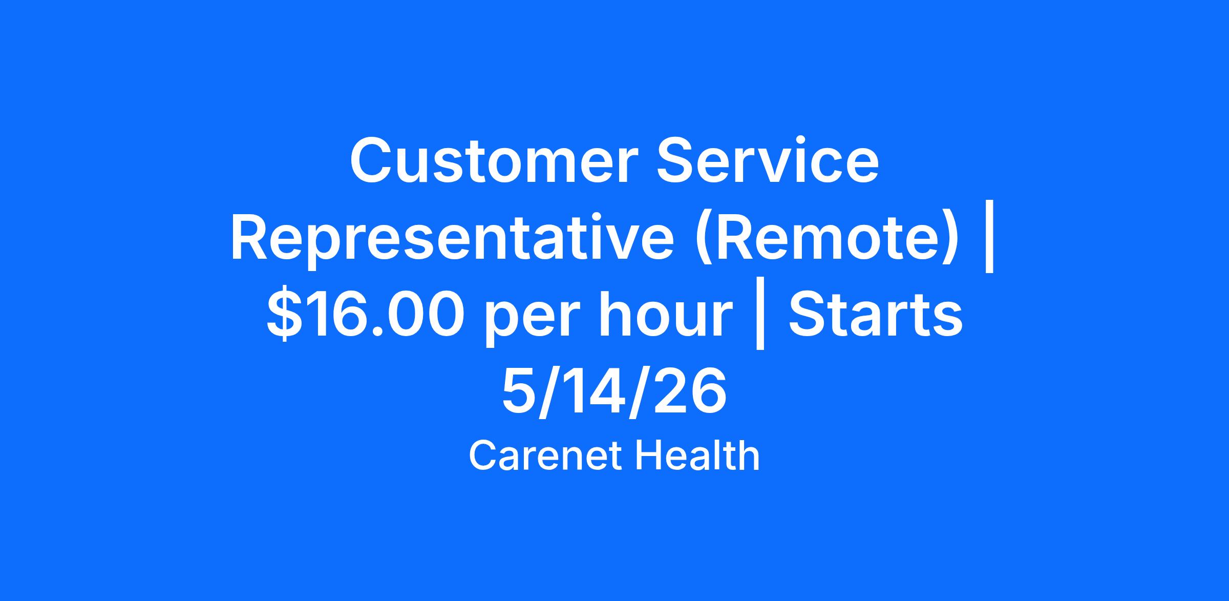 At Carenet Health, we value the expertise and dedication of our team members, and we are committed to offering an appealing compensation package. The wage for the Customer Service Representative is $16.00 per hour.