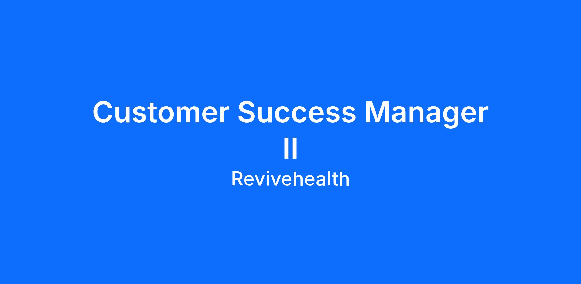 The Customer Success Manager II is responsible for managing a portfolio of customer programs to ensure successful execution of program and service deliverables. Provide incremental revenue and increase profitability for a portfolio of Revive contracts. Implement, promote and manage programs. Develop relationships with key contacts, provide consultation and program troubleshooting. Assist client companies by identifying their unique health risks and assist in the development of system-wide action plans. Recommend and implement new workplace services. Ensure client satisfaction and retention of contracts. Provide ongoing support to client companies to make positive lifestyle changes in their workforce. Provide onsite services as needed. Provide direction and oversight for accounts assigned.