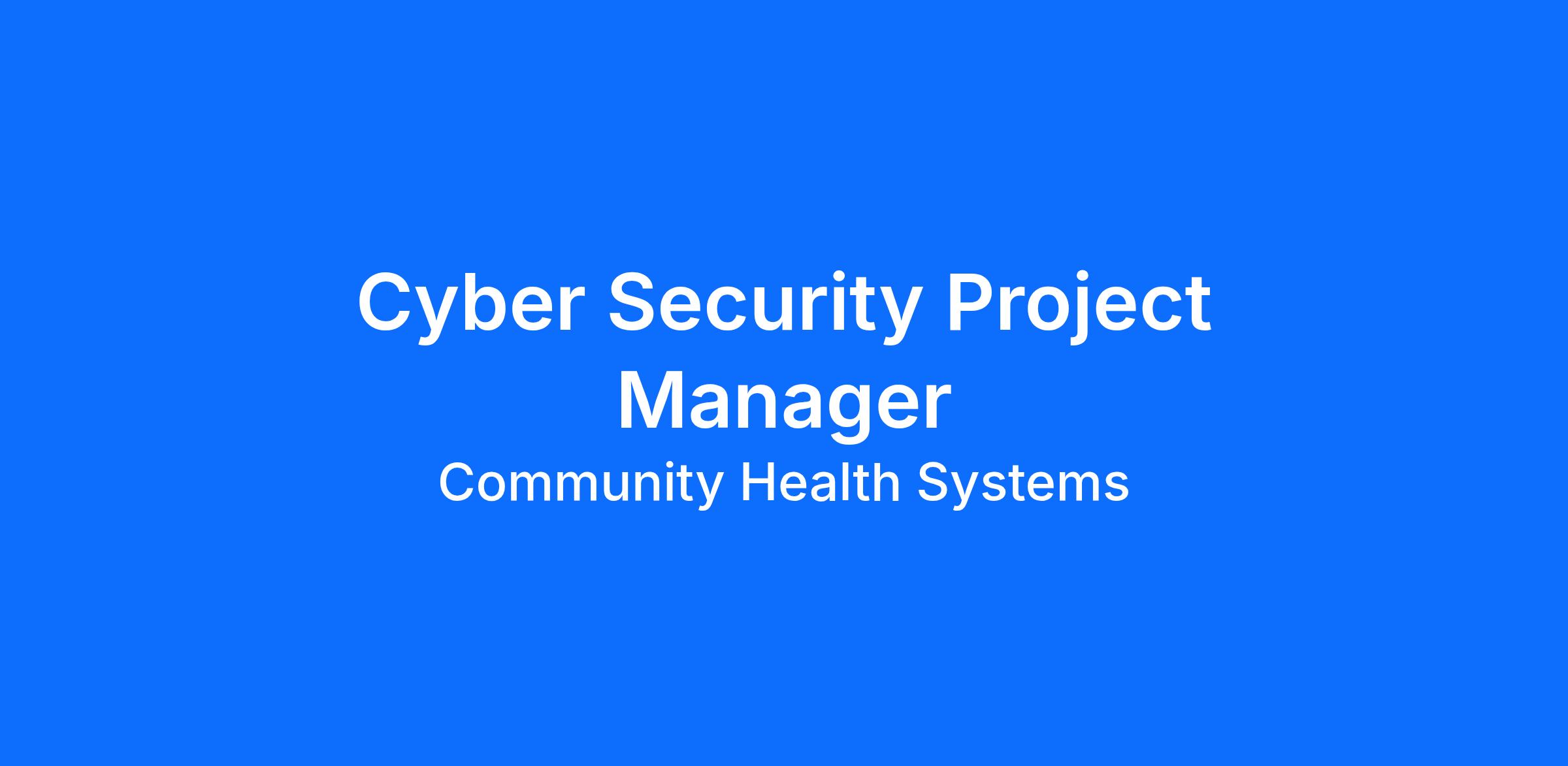 As a Cyber Security Project Manager at Community Health Systems (CHS) – Shared Business Operations, you’ll play a vital role in supporting our purpose to help people get well and live healthier by providing safe, quality healthcare, building enduring relationships with our patients, and providing value for the people and communities we serve. Our team members enjoy a robust benefits package including: