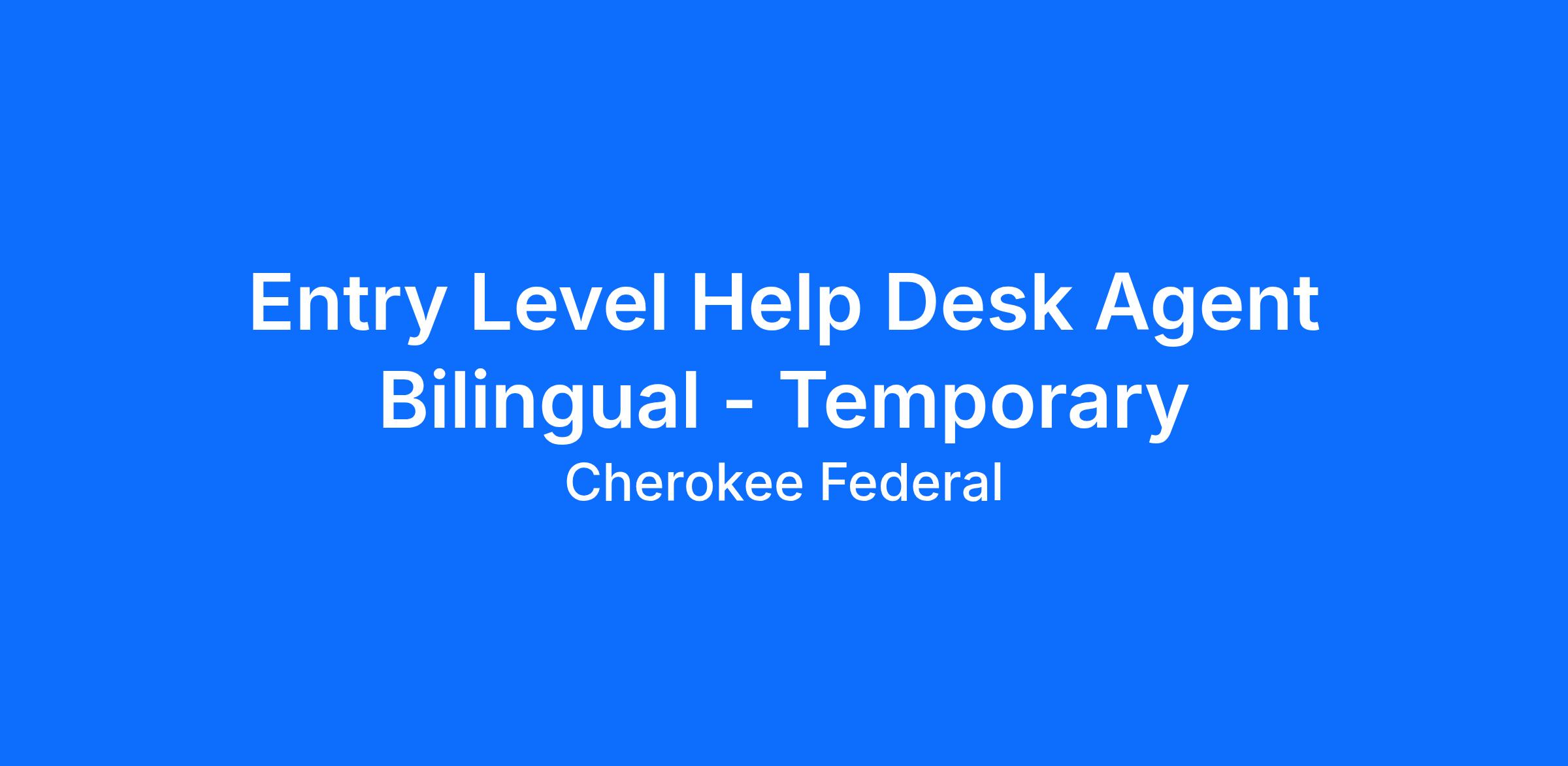 Estimated Starting Salary Range for Help Desk Agent – Tier 1 Bilingual: Pay commensurate with experience.