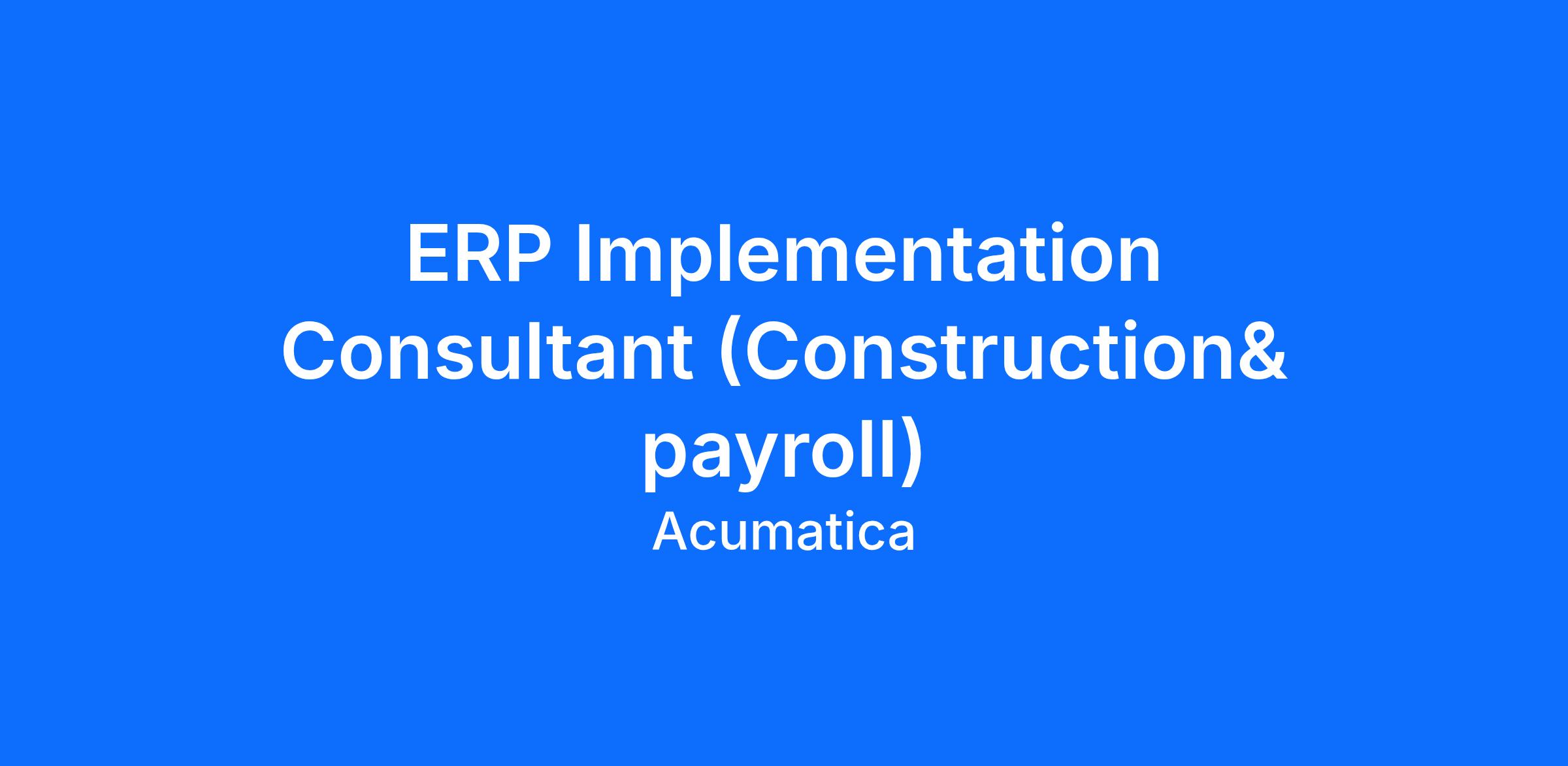 We are looking for an ERP Implementation Consultant that is a Subject Matter Expert in payroll in Construction.