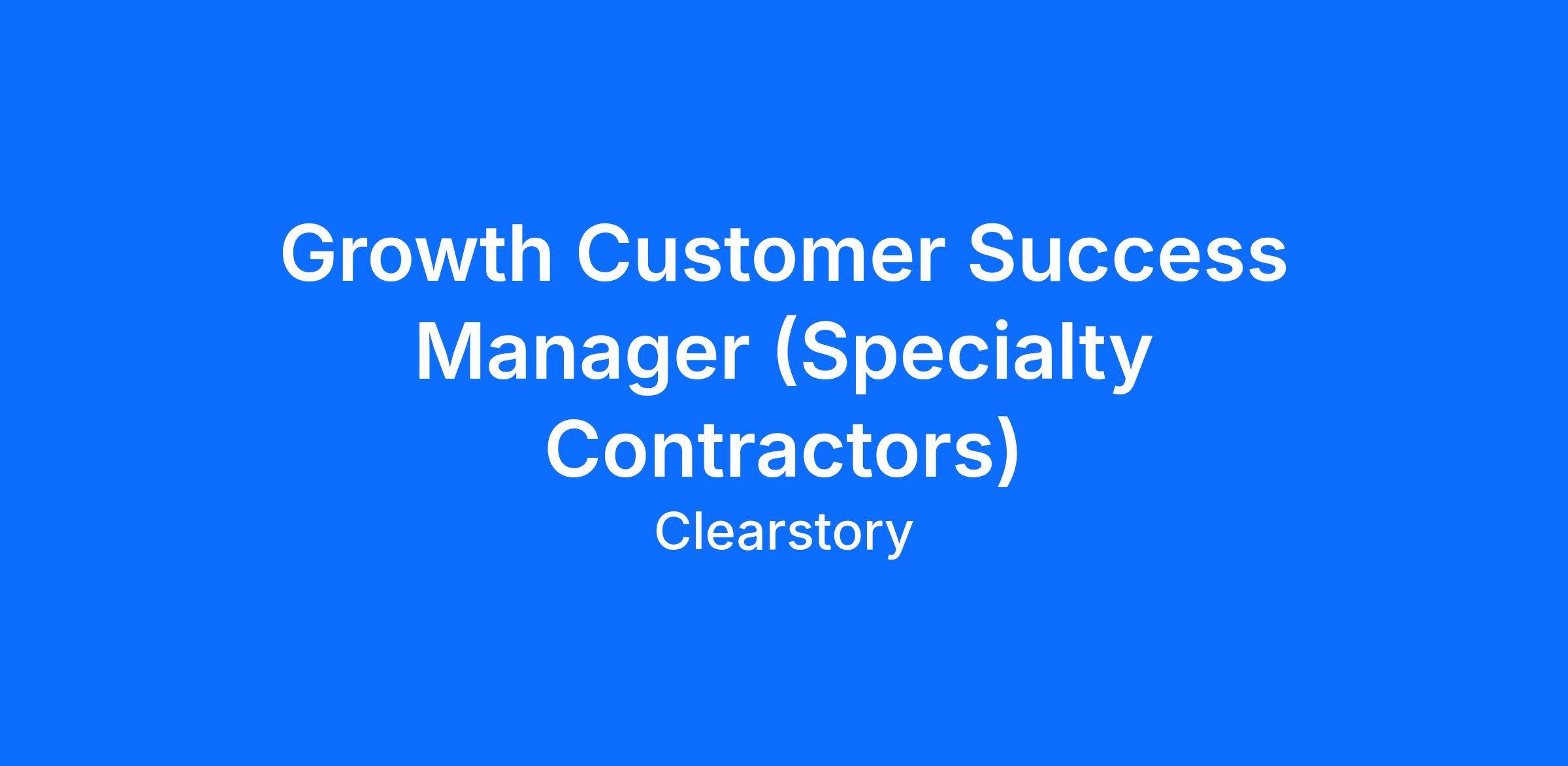 The Growth Customer Success Manager owns the post-sale experience for Clearstory's growing specialty contractor customers. You will manage a large portfolio of accounts through a lightweight, scalable engagement model — combining a CSM-led onboarding experience with automated touchpoints, in-app guidance, health monitoring, and AI-enhanced outreach.