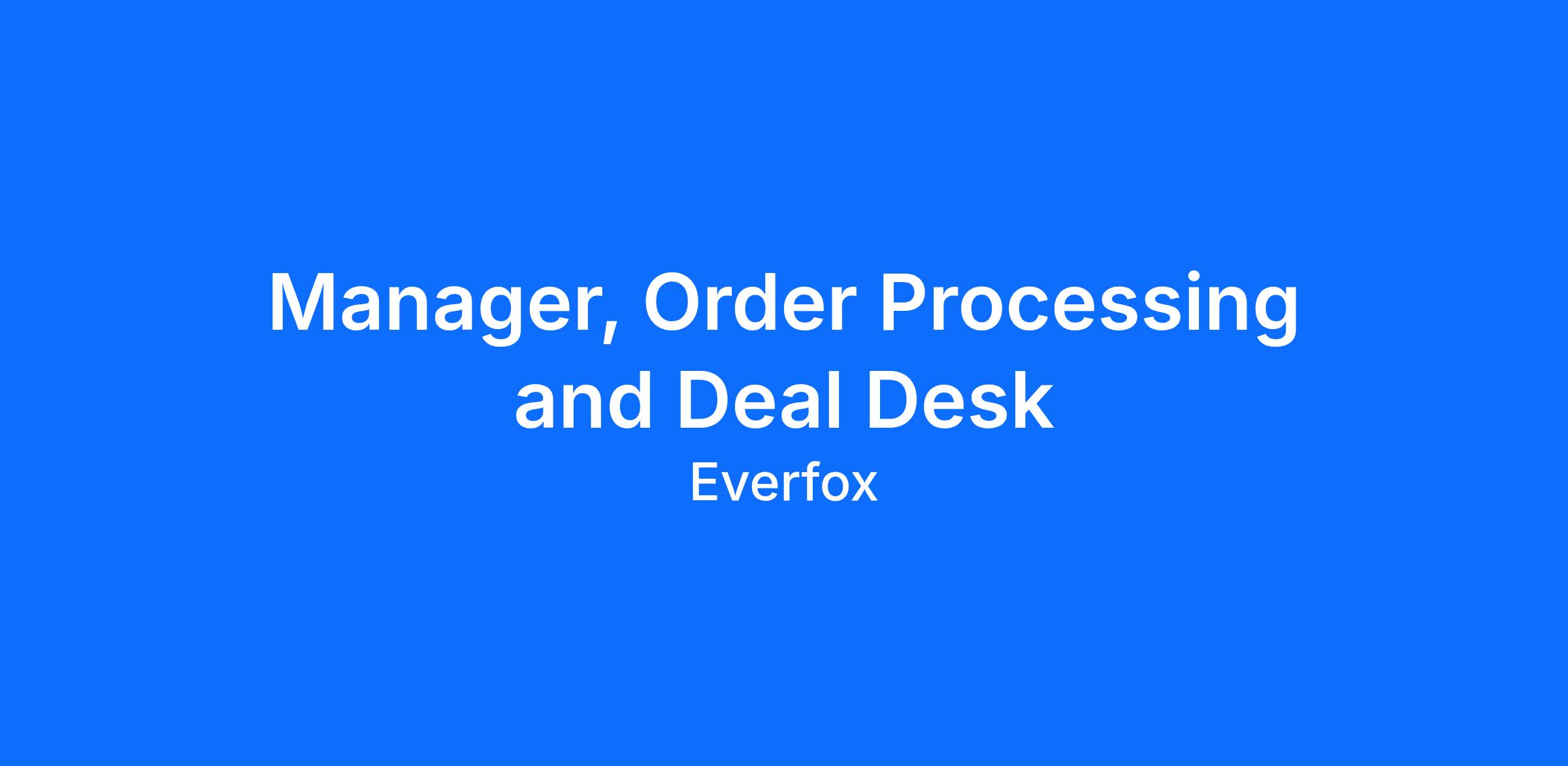 Title: Manager, Order Processing and Deal Desk