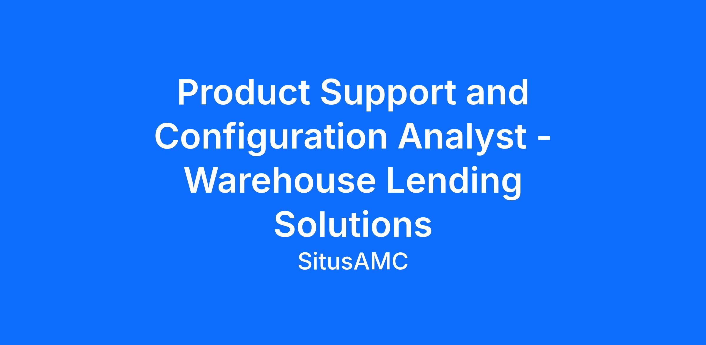 This position will have a primary focus on day-to-day operational support for the Warehouse Financing business. Display knowledge of Warehouse Financing Solutions including collaboration with Technology and Product Support teams.