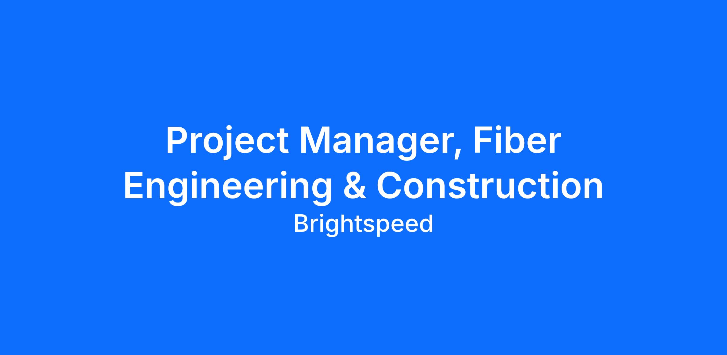 Brightspeed is looking for a Project Manager, Fiber Engineering and Construction to join our team! This position will be part of the Engineering & Construction Fiber Build team. As a Project Manager you will be responsible for the end-to-end lifecycle of engineering projects, network design, construction scheduling & implementation and asset management. The Fiber Build program diverse in nature ranging from Fiber Overbuild & Subsidy deployment, Vendor oversight, Build Milestone & Schedule management, Right of Way, Joint Use, permitting, process development, training & communication and compliance to process.
