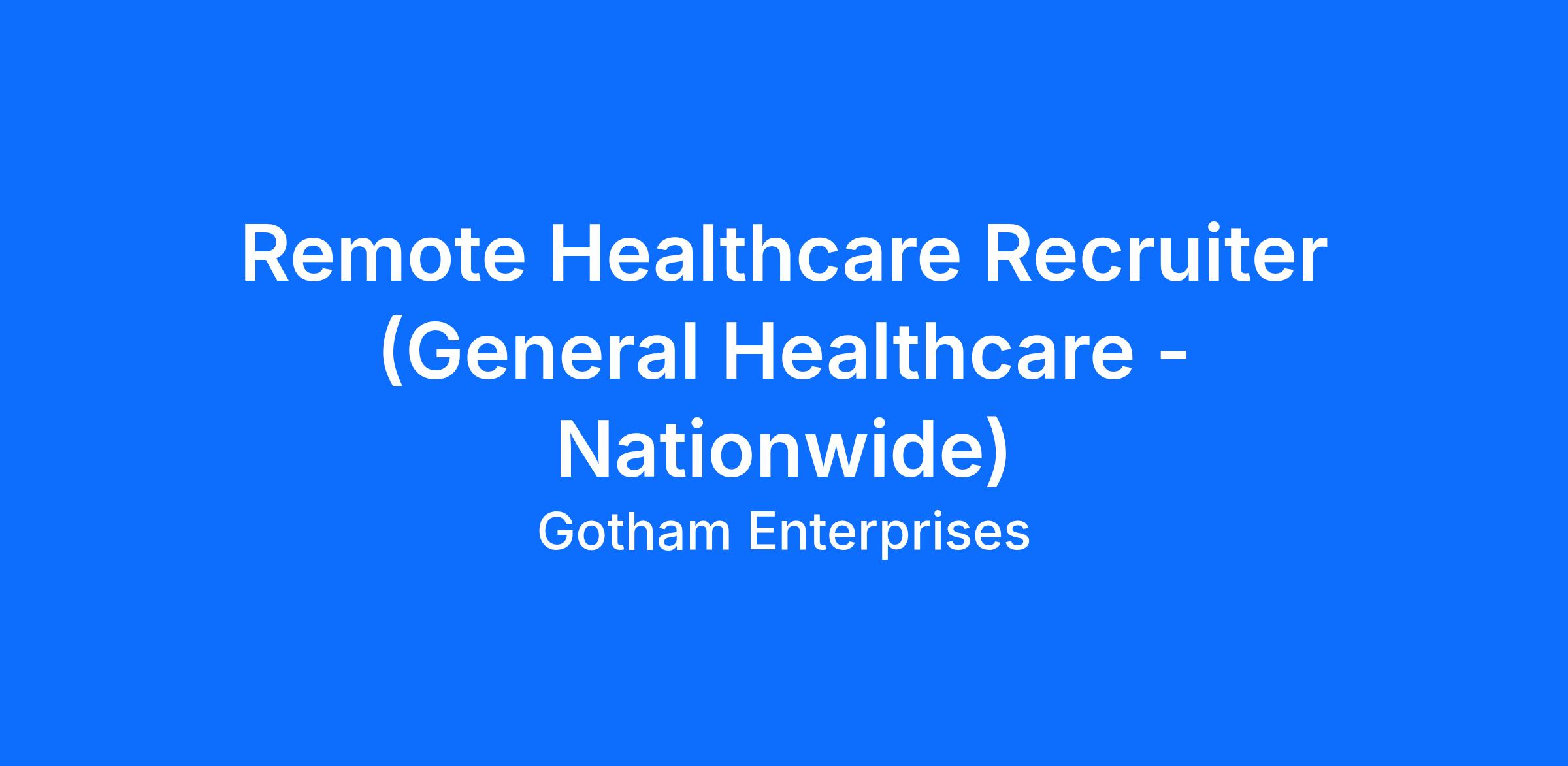DescriptionRemote Healthcare Recruiter (General Healthcare – Nationwide)