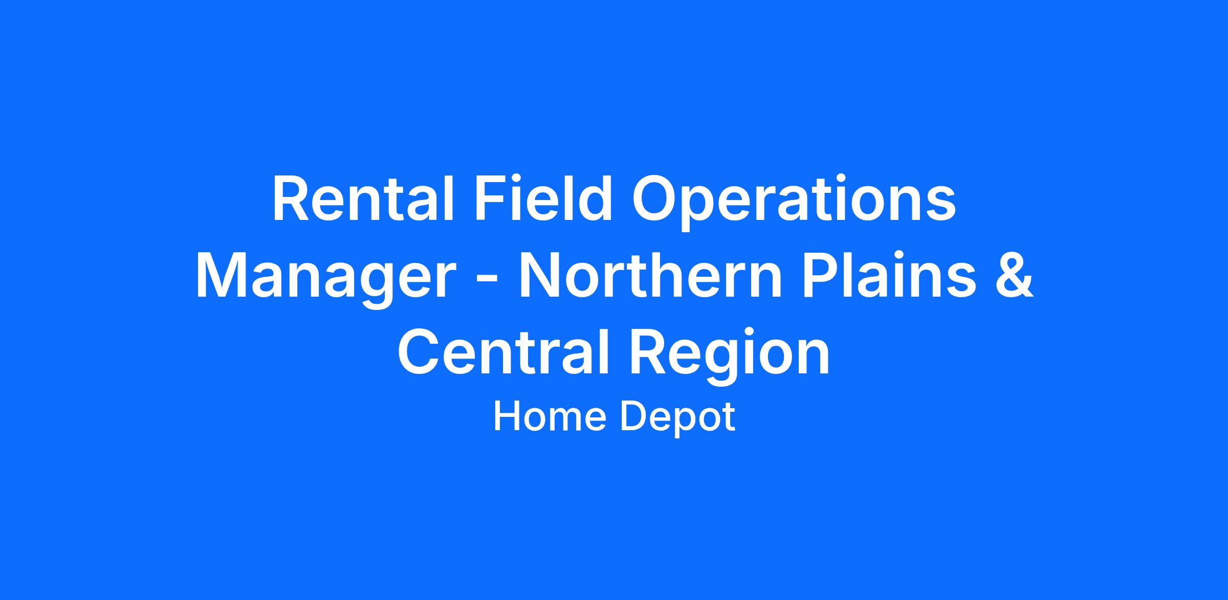 Rental Field Operations Manager - Northern Plains & Central Region