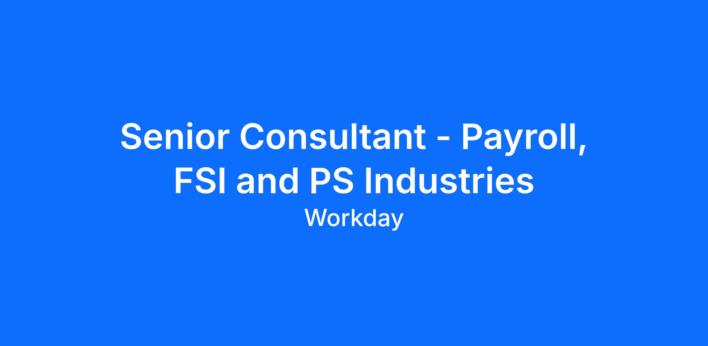 The Payroll Senior Consultant will be responsible for ensuring the successful implementation of Workday’s Payroll solution for our Financial Services, Insurance (FSI) and Professional Services (PS) customers and help establish and champion best practices for all deployments. The ideal candidate for this position should have experience within the Payroll area in the FSI or PS Industries.