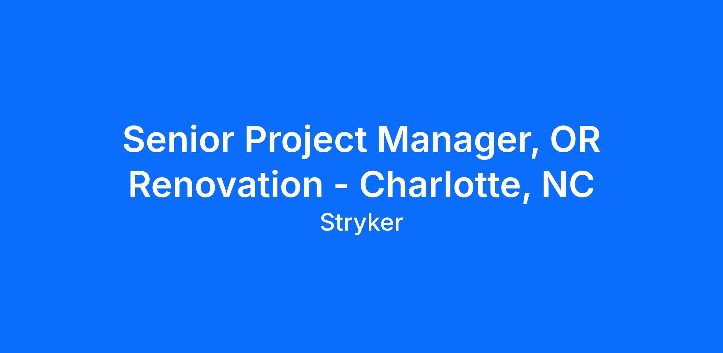 An OR Renovation Senior Project Manager manages new build and renovation projects from purchase order through project completion while supporting the regional Program Manager with quoting, selling, planning, vendor management and budgeting phase. Key metrics include Revenue, Quality, Cost, Customer Satisfaction and Schedule. They will be responsible for partnering with internal and external stakeholders to drive an exceptional customer experience while delivering upon key performance objectives.