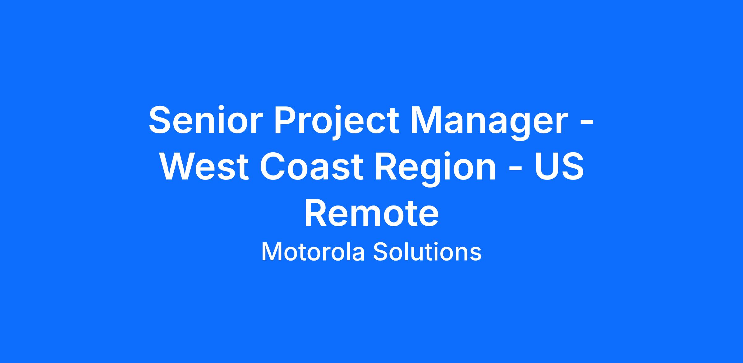 Senior Project Manager - West Coast Region - US Remote