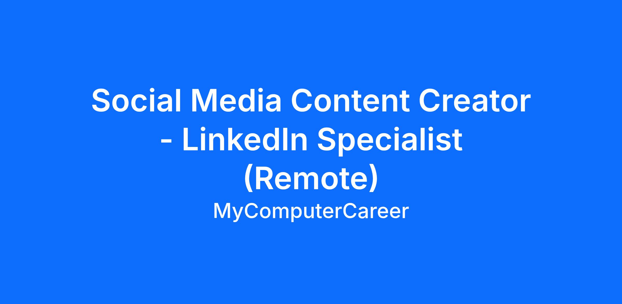 Social Media Content Creator - LinkedIn Specialist (Remote)