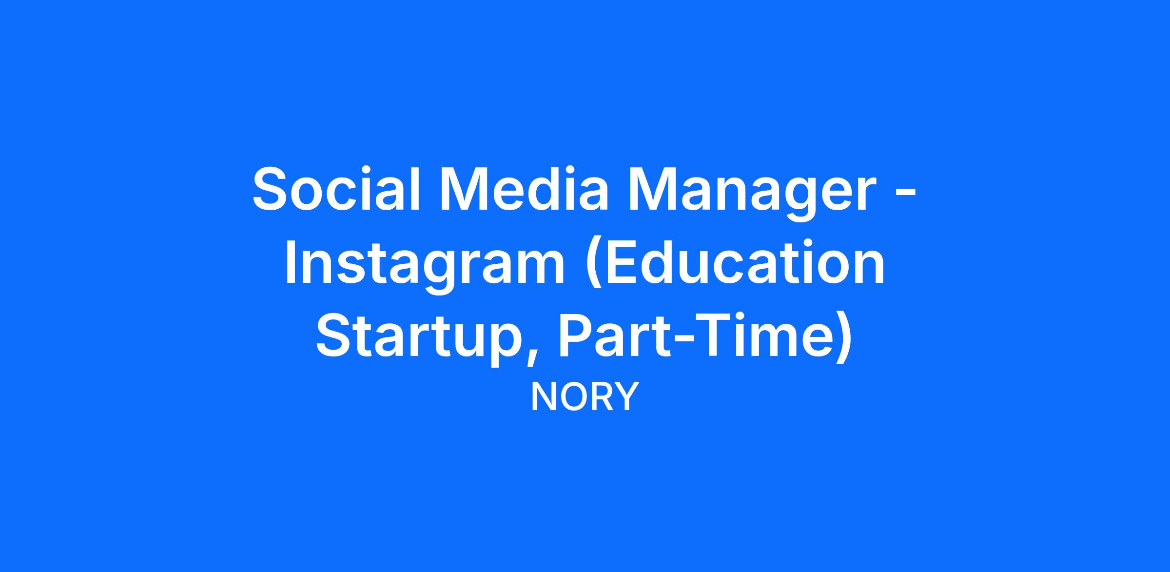 The Role: We are looking for a prolific and talented Social Media Manager to take ownership of NORY’s Instagram presence. What we do is incredibly fun - we help young children create robotic inventions that in turn help the people around them. Project prototypes, thought-provoking discussions, and children’s big silly smiles provide endless content to share with the world.