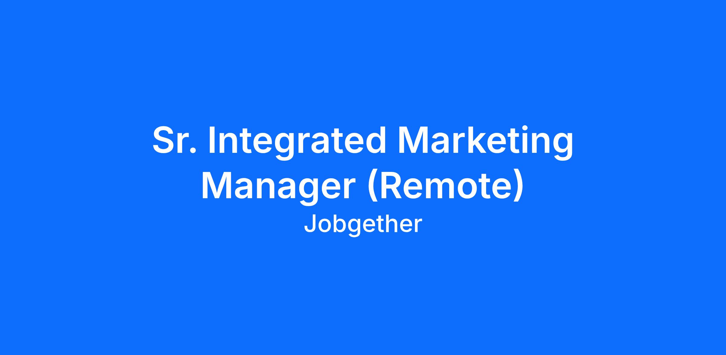 Sr. Integrated Marketing Manager (Remote)