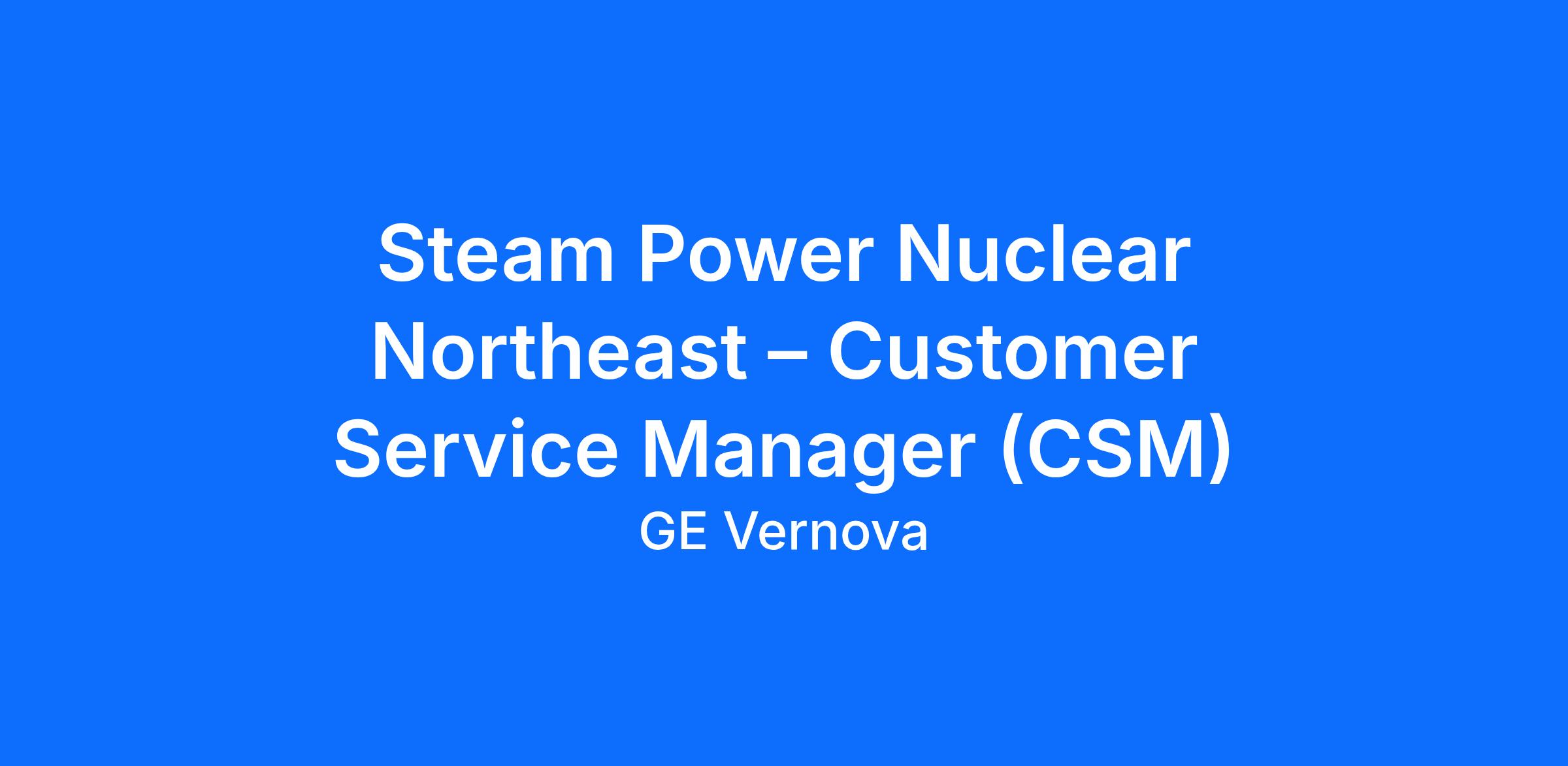 As a Customer Service Manager (CSM) in the GE Steam Power Americas Nuclear North Region, this role is a critical P&L (Profit & Loss) owner directly engaging with internal and external customers and delivering safe, quality, on time, profitable outage execution on both GE’s nuclear installed base of steam turbines, generators, and balance-of-plant components as well as on Other OEM (Original Equipment Manufacturer) equipment. This demanding role will require you to function effectively in a broad and matrixed environment.