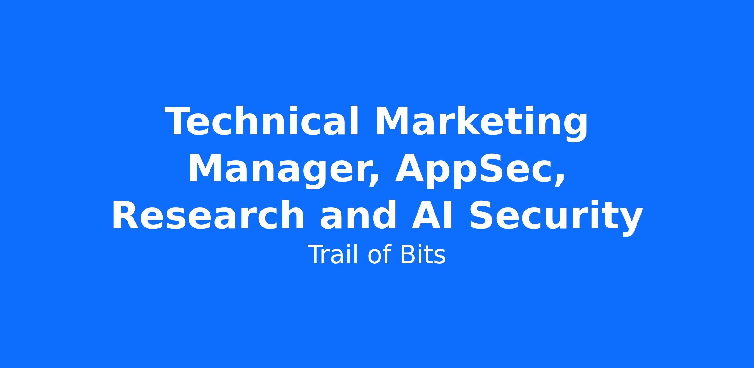 Trail of Bits is looking for a Technical Marketing Manager to run marketing day-to-day for our AppSec, AI/ML Security, and Research & Engineering practices. This role sits alongside an existing TMM peer who currently covers our Blockchain & Cryptography practice. Together you’ll form the core of Trail of Bits’ marketing execution. You’ll work directly with engineering directors and the broader go-to-market team (including Marketing, Technical Editing, Project Management, and Sales Engineering) to turn security research into effective marketing: blog posts, social campaigns, event presence, case studies, and co-marketing with clients.