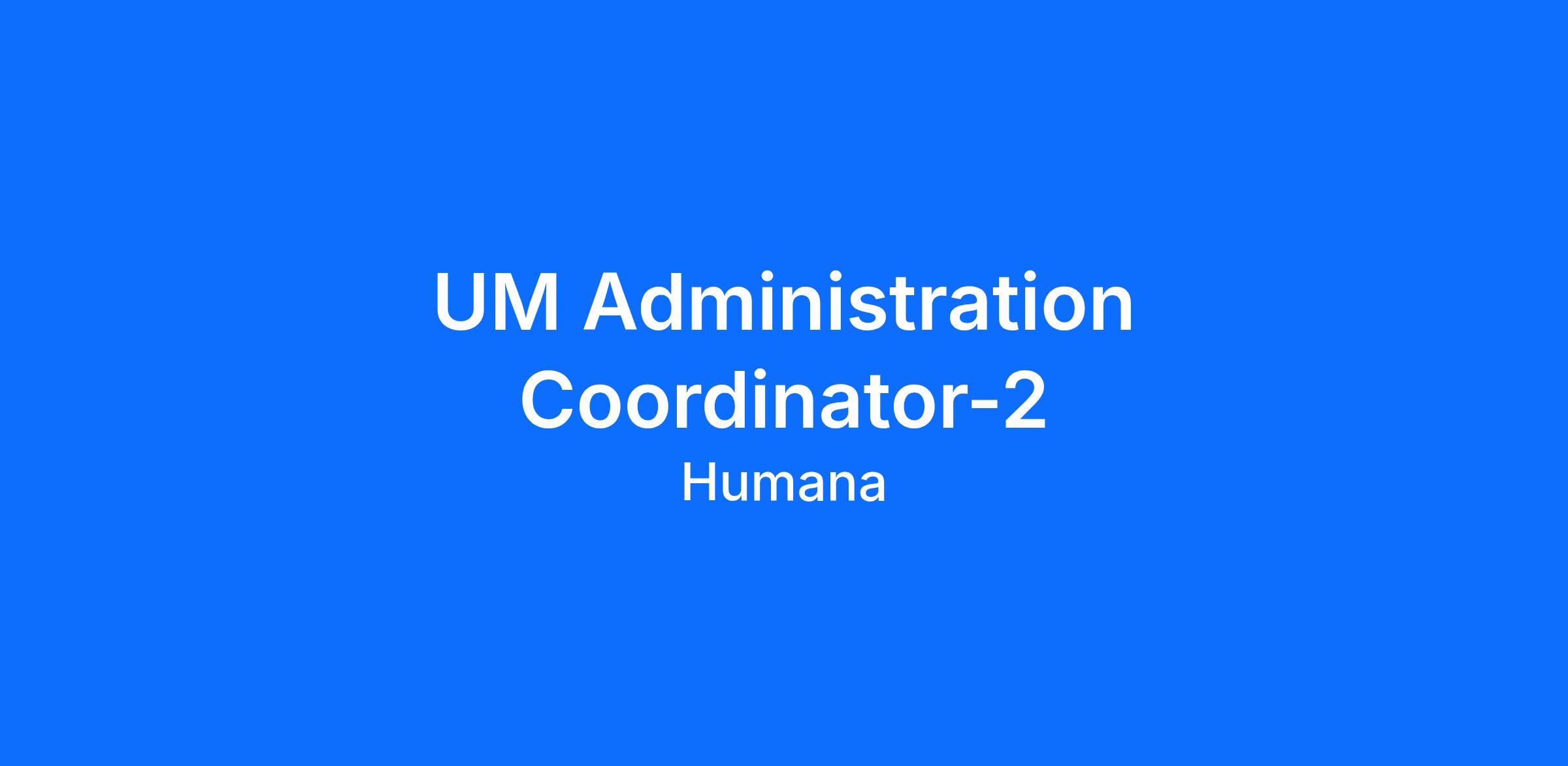 The UM Administration Coordinator 2 contributes to administration of utilization management. The UM Administration Coordinator 2 performs basic administrative, operational, customer support, and computational tasks working on semi-routine and patterned assignments.