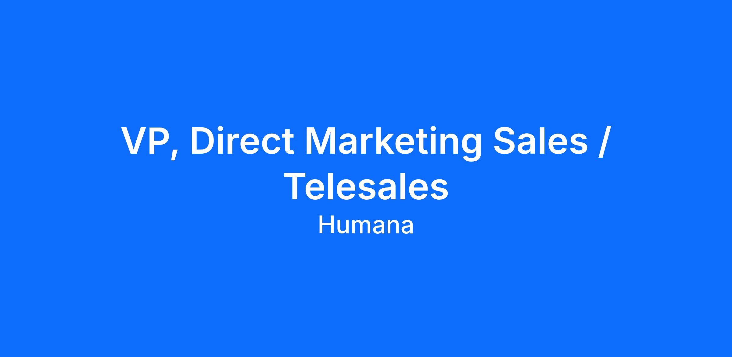 The Vice President, Direct Marketing Sales (DMS) / Telesales is responsible for leading Humana’s direct-to-consumer sales engine, driving growth across Medicare Advantage, PDP, and ancillary products. This executive owns the full telesales lifecycle — from demand intake through enrollment and retention — ensuring a high-performing, scalable, and compliant operation. The role requires balancing aggressive growth targets with disciplined execution, exceptional customer experience, and strict regulatory adherence in a highly seasonal Medicare environment. This role reports to the SVP, Distribution.